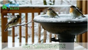 - You can select from three main types—classic pedestal, deck-mounted, or ground-level styles—based on your space constraints and bird preferences, with submersible deicers offering the most versatile installation options.