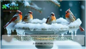 Your heated bird bath becomes essential for bird survival since it provides clean water for drinking, bathing, and preening when natural sources freeze solid, which is crucial for bird survival.