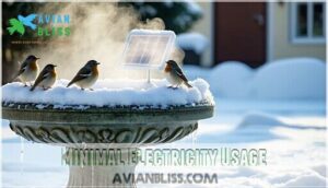 You’ll give birds a steady water source that doesn’t freeze, even when temperatures drop to -20°F, helping them stay hydrated throughout winter’s harshest conditions.