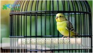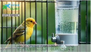 These strategies work together to guarantee your feathered friend stays properly hydrated and healthy throughout the day.