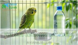 Strategic water container placement transforms your bird’s drinking experience. Position bowls at comfortable heights where your feathered friend can easily access them without stretching awkwardly.