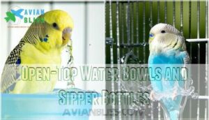 You’ll want to take into account factors like beak size, cage setup, and whether your bird prefers open bowls or enclosed bottles.