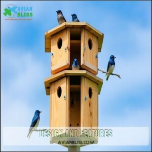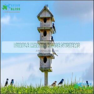You’ll find that Purple Martin house systems combine smart design with practical features to support thriving colonies.