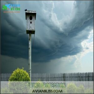 Consider location shielding by placing the house near natural windbreaks like shrubs or fences, but leave enough open space for flight paths. Martins tolerate a bit of sway, so telescoping poles or an easy lift pole work well.