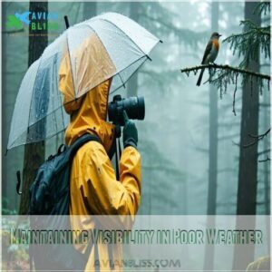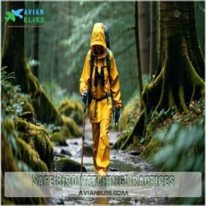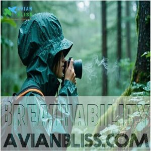 Rain gear for bird watching is like a shield against nature’s unpredictability—keeping you dry and focused.