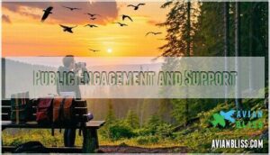 For instance, citizen science lets you log sightings, fueling migration studies. Education programs reach thousands, shaping public attitudes and inspiring future advocates. Online engagement, like wildlife webcams, brings data and excitement to your screen. Volunteerism, from surveys to rehabilitation, makes conservation efforts possible.
