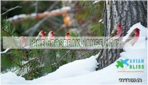 Pine Grosbeaks are California’s winter wanderers, showcasing vibrant Grosbeak Plumage in coniferous forests.