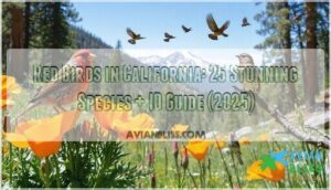 You’ll find five red bird species that regularly inhabit California throughout the year or during specific seasons.