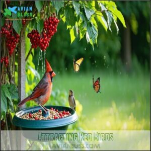 - Attract red birds by providing native fruit-bearing plants, clean birdbaths, and feeders stocked with seeds like black oil sunflower seeds and millet.