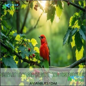 Scarlet Tanagers, sensitive to mature woodland loss, feel this pinch sharply.