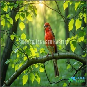 In Illinois, you’ll spot vibrant red birds like Northern Cardinals, Scarlet Tanagers, and Summer Tanagers.