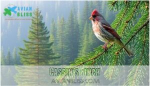 You’ll often spot Cassin’s Finch in mountainous regions where males showcase tiny red crests that catch sunlight beautifully.