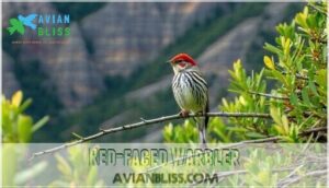 Red-faced Warblers stand out with vibrant crimson faces year-round, contrasting their mountain forest habitats.