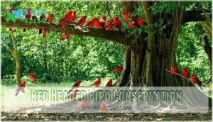 - Many red-headed birds face conservation challenges from habitat loss, climate change, and urban development, making citizen science programs and habitat preservation efforts crucial for their survival.