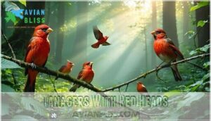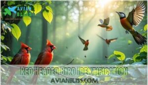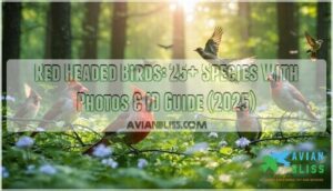 - You’ll find over 25 red-headed bird species across North America, including cardinals, finches, woodpeckers, tanagers, and hummingbirds, each with unique identifying features beyond just their red coloring.