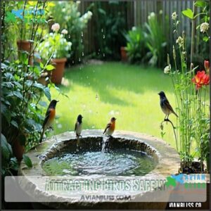 You’ll transform your backyard into a bird sanctuary by combining safe water sources with appropriate shelter and nutrition, creating a complete ecosystem for feathered visitors.