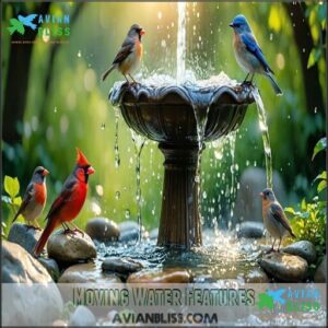 You’ll notice birds are naturally drawn to the movement and sound of flowing water, making these fountains bird magnets while requiring no electricity or complex installation, which also highlights their advantage as bird magnets.
