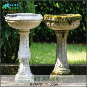 Resin bird baths are lightweight and affordable, blending well with gardens, but their lifespan is shorter and prone to cracking.
