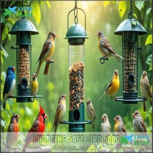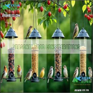 Use clean feeders suited to each type of food, and you’ll see birds flocking in no time. Curious about seasonal options? There’s plenty to explore!