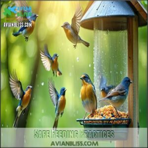 You can keep backyard birds healthy by following safe feeding practices like cleaning feeders and placing them wisely to prevent collisions.