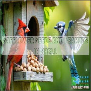 Safflower seeds are perfect for selective feeding—their taste deters squirrels while attracting cardinals and chickadees.