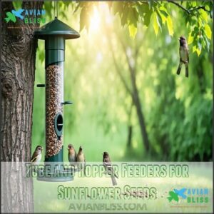 Setting up bird feeders? Tube and hopper feeders are perfect for black oil sunflower seeds. Place them where birds feel safe and you can enjoy the show.
