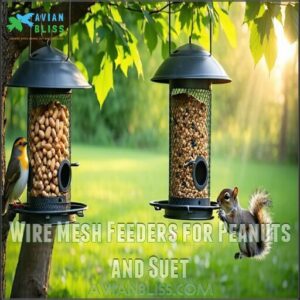 Wire mesh feeders are perfect for offering safe bird food like peanuts and suet.