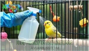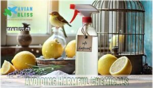 Remember, consistency matters more than strength when cleaning, and your bird’s health depends on your smart choices, so stick with natural solutions that keep both cleanliness and safety in perfect balance.
