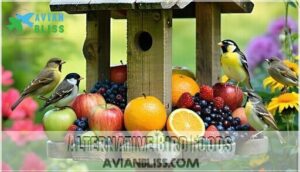 - Feeding alternatives like suet, fresh fruits, and mealworms provide mess-free, healthy options year-round.