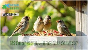 You can feed small birds effectively by using tube feeders or platform feeders that suit their size and habits.