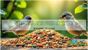 Seedless bird food simplifies feeding while keeping your yard clean, reducing waste, and ensuring every bite fuels your feathered friends!