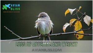 Birds hide illness well, so loss of appetite often signals serious trouble brewing.