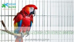 Common risks include vitamin imbalance, leading to liver disease, kidney failure, or even heart problems. Birds on seed-based diets are particularly susceptible to vitamin A deficiency.