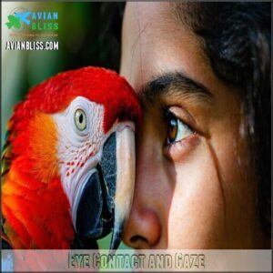 You notice your bird’s eye contact is a sign of trust. A sustained gaze with soft eyes and a slow blinking rate indicates comfort.