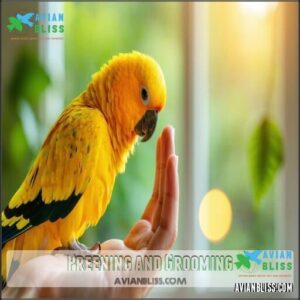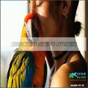 Your bird’s affectionate behaviors, like preening or regurgitating food, may indicate they’re "in love" with you, showing strong trust and bonding through intimate actions.