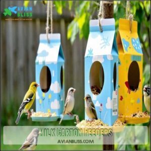 Beyond plastic bottles, milk carton feeders offer another smart eco-friendly solution that’s equally effective for attracting birds to your yard.