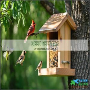 Across various backyard habitats, seed feeders remain the most versatile small bird food dispensers you’ll install.