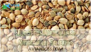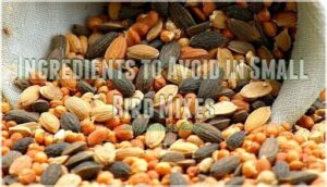 You’ll want to avoid low-value fillers like milo, grain sorghum, and red millet in your small bird food mix as they provide minimal nutrition and often go uneaten.