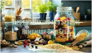 For longer shelf life, refrigerate high-fat ingredients like peanuts and sunflower seeds. Label each container with the date to track freshness and use the oldest mixes first.