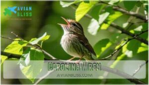 You’ve likely heard the surprisingly intense song of the tiny Carolina Wren, barely two inches long yet boasting a distinctive melody that belies its miniature stature. Perching on branches and raised surfaces, the Carolina Wren’s rolling, vibrant, loud song emanates enthusiastically from its tiny body.
