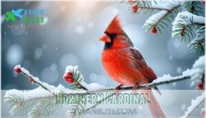 The rich whistled song of the northern cardinal brightens winter days. This bird’s cheerful presence provides comfort in every season.