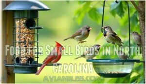 You’ll want to stock up on the right foods to keep North Carolina’s small birds coming back for more. Understanding seed preferences and natural forage patterns helps you create an irresistible buffet. Winter feeding becomes especially critical when natural food sources disappear.