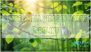 You’ll find these small nc birds across different habitats, from wooded areas to suburban gardens, each with specific diet preferences and nesting habits that reflect the state’s habitat diversity.