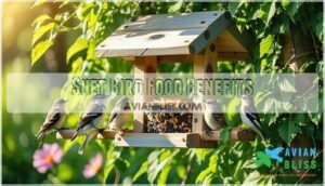 Monitor your offerings closely, replacing them promptly to prevent spoilage, and with these smart strategies, you’ll guarantee your avian visitors stay nourished and coming back for more protein-rich treats.