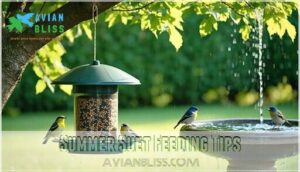 When you understand the nutritional benefits and summer feeding techniques, you’ll create an irresistible feeding station that keeps local birds healthy and coming back for more, making your backyard a bird sanctuary.