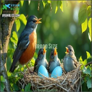 You’ll be surprised to learn that robins can raise up to three broods in a single season, each time producing three to five distinctive sky-blue eggs in their carefully crafted nests.