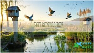 Beyond their enchanting appearance and flight, Tree Swallows communicate through soft chattering calls, adding to their mystique. Observing these agile birds in flight fosters a sense of belonging to the natural world, providing a glimpse into their freedom of movement and connection with their environment.