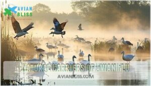 You’ll find that wild birds serve as natural reservoirs for avian influenza viruses, carrying these pathogens without always showing symptoms themselves.