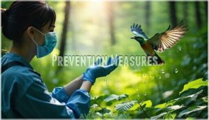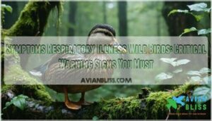 - You’ll spot respiratory illness in wild birds through labored breathing, nasal discharge, swollen heads, and unusual lethargy—these symptoms often signal dangerous avian influenza like H5N1 that’s spreading across North America.