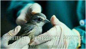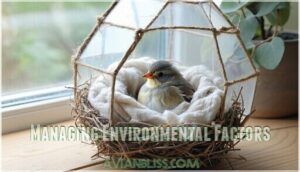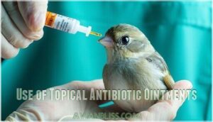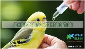 After treatment’s complete, watch your bird closely for complications. Monitor rubbing behavior and check for redness or irritation that could signal bird eye injury complications requiring immediate veterinary attention.